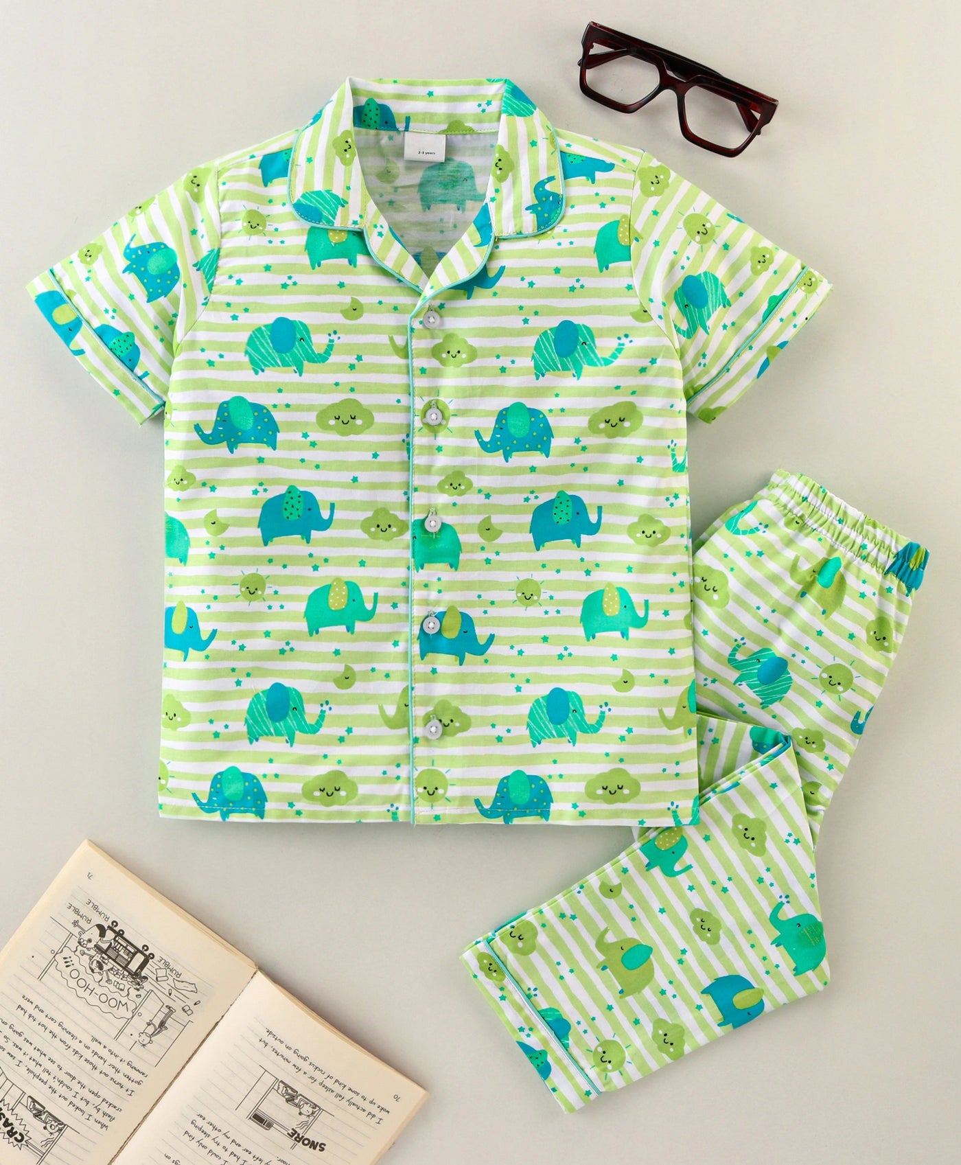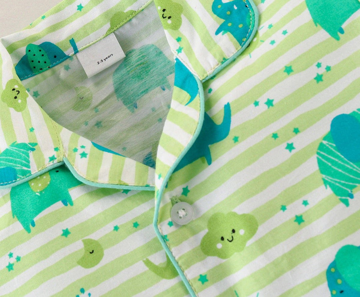 Kukus91 Baby girls Hathi design Night suit Set - Green / 1-2 yr