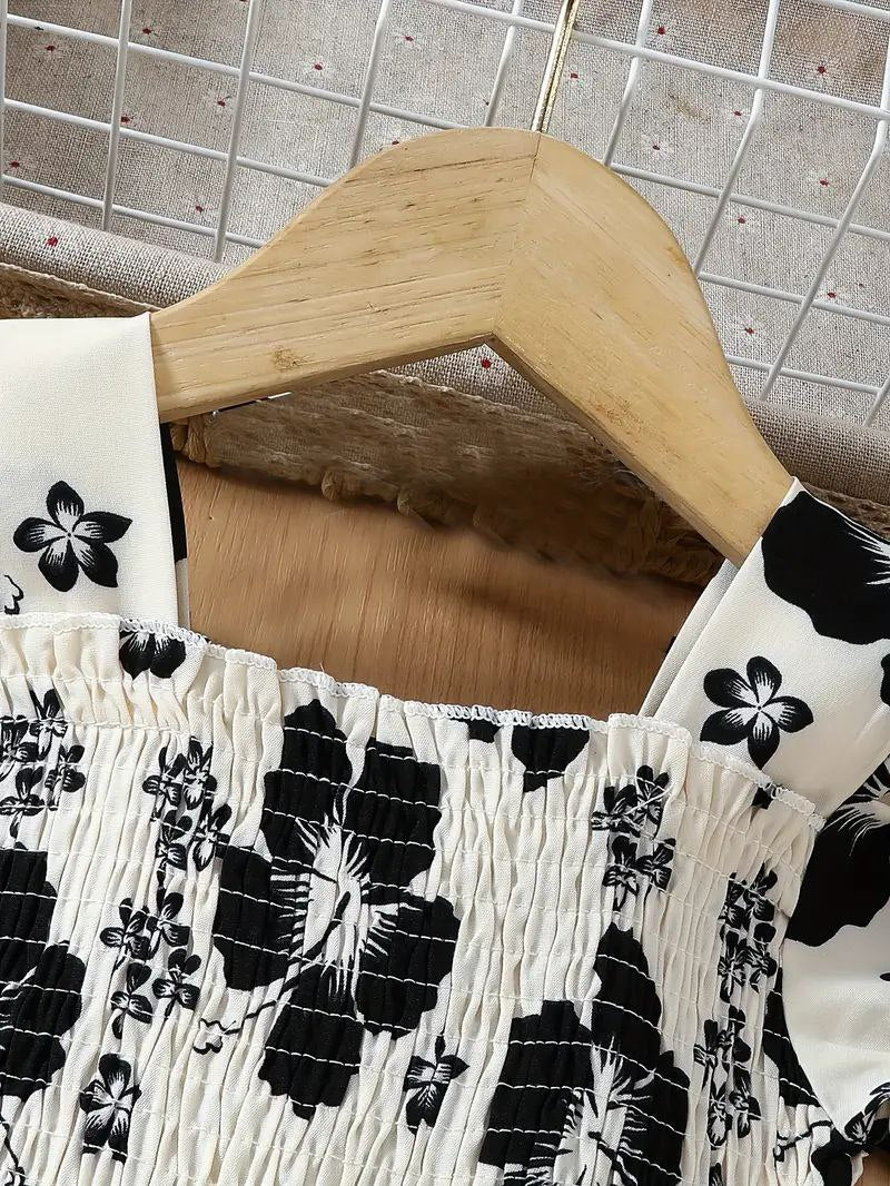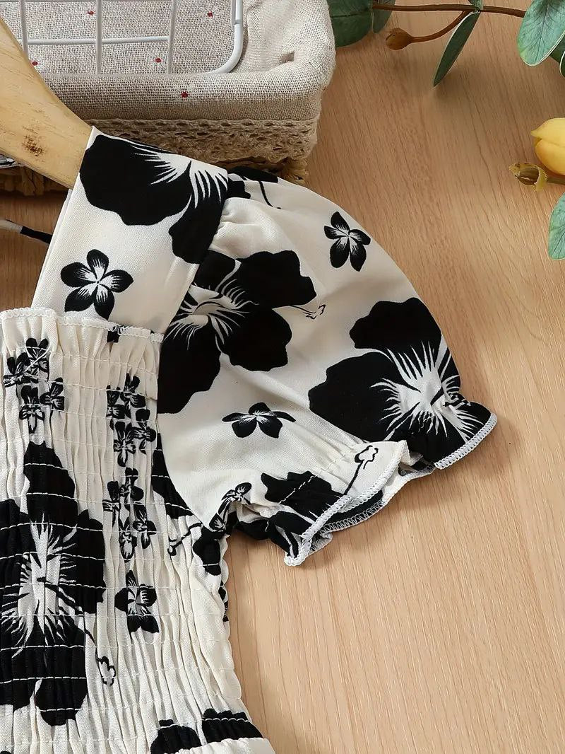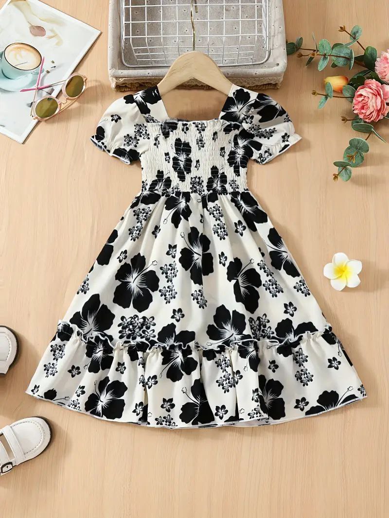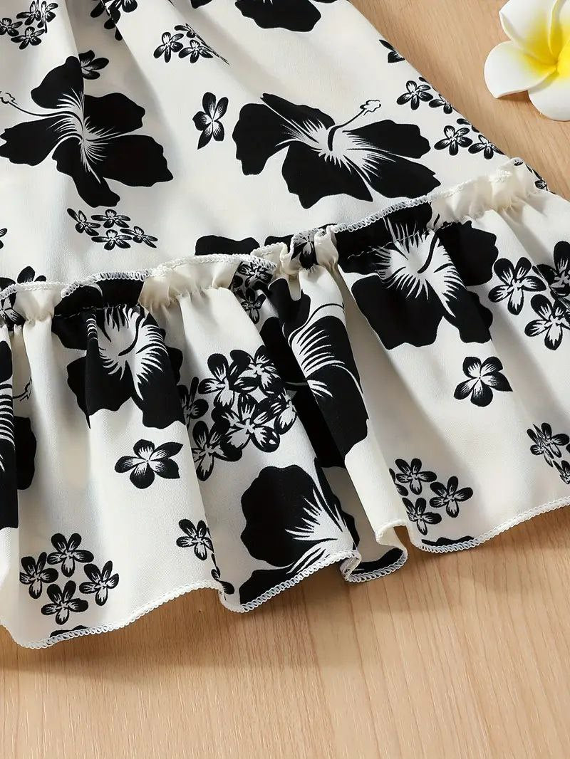 Girls’ Black & White Floral Print Frock Dress - 7-8 yr