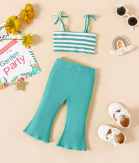 Girls Western Wear Stripe Tops & Bottom Set - Black / 6-9 months
